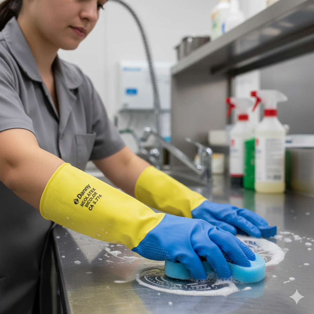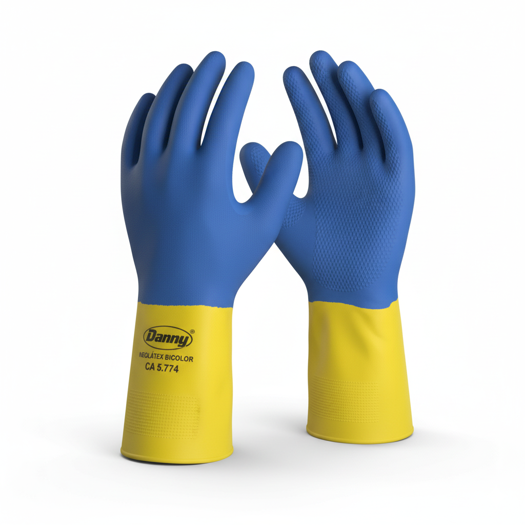 A Luva Neolátex Bicolor Danny é indicada para proteção das mãos contra agentes químicos de uso frequente e riscos mecânicos leves, tornando-se uma opção versátil para limpeza industrial, higienização, coleta seletiva, manutenção, manuseio de produtos químicos diluídos e atividades gerais. Seu material em látex natural proporciona excelente flexibilidade e sensibilidade tátil, permitindo que o usuário tenha firmeza e precisão ao segurar ferramentas e objetos.