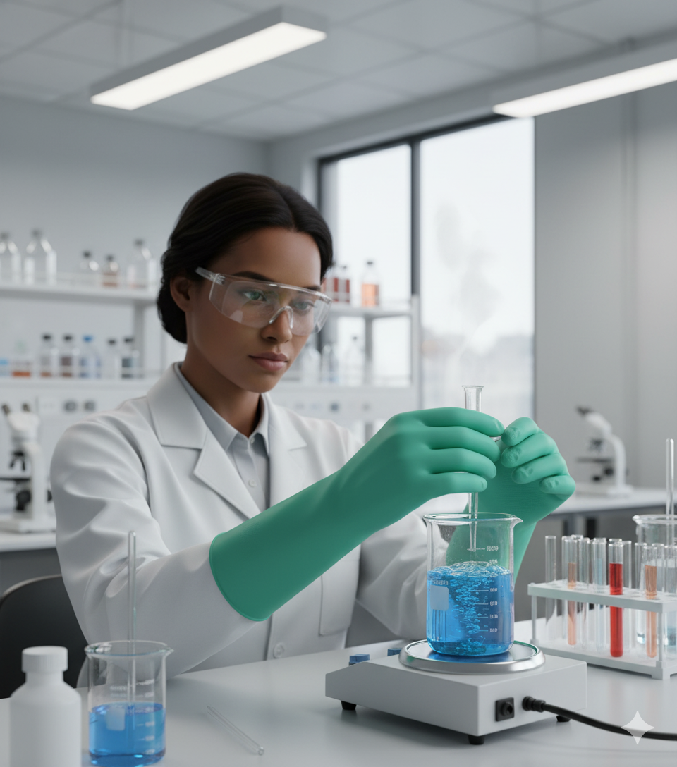 Material: Borracha nitrílica (NBR) de alta resistência química, com interior flocado de algodão