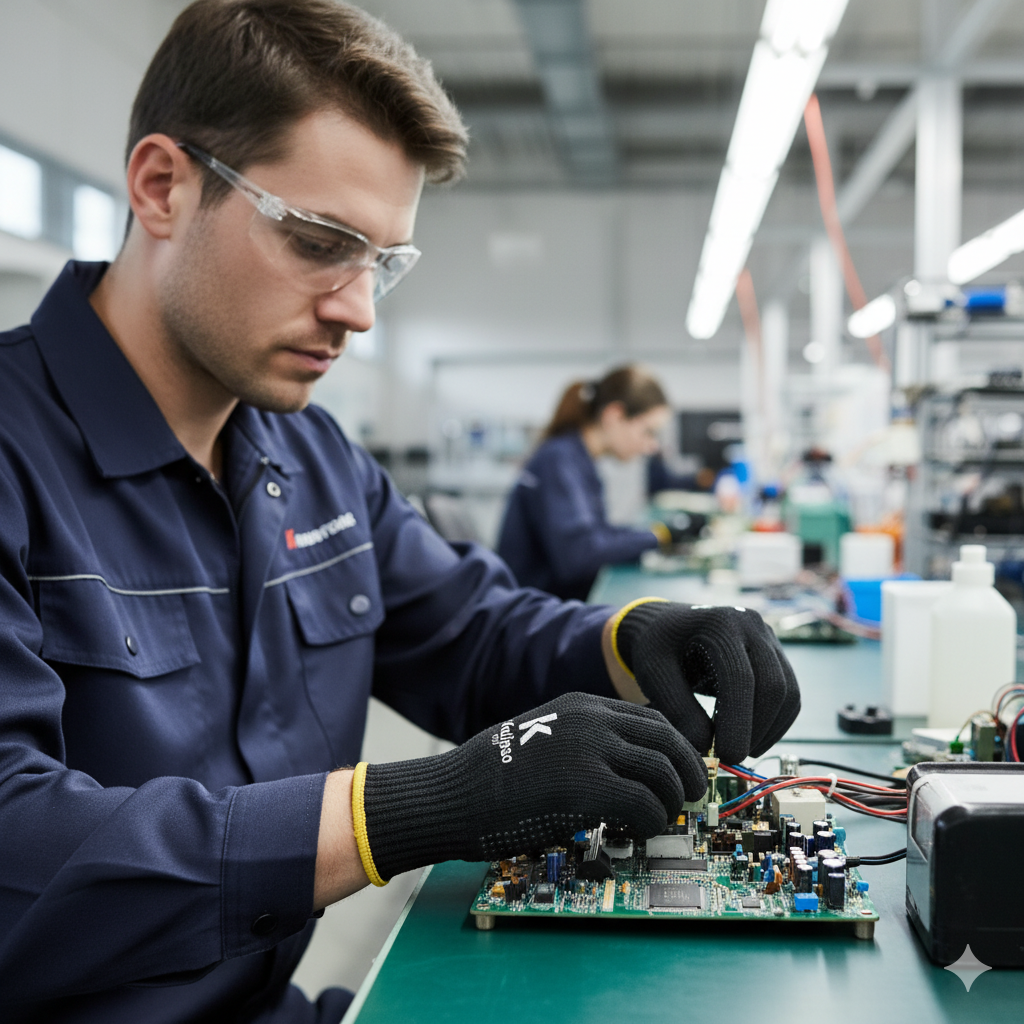 Benefício 1: Aumenta a firmeza no manuseio de ferramentas e peças, reduzindo o risco de quedas e acidentes.